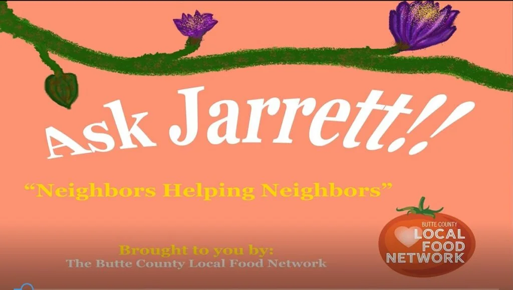 This Sunday, July 18 , he will be at Vecino Victory Garden launching the project and answering your questions about gardening. Come chat with Jarrett from 9am to 11am (garden hours start at 8 to avoid the heat). Bring your questions, your challenges, your joys and share them with one of our gardening experts. Vecino is at 1535 Laburnum Ave in Chico. We hope to see you there!